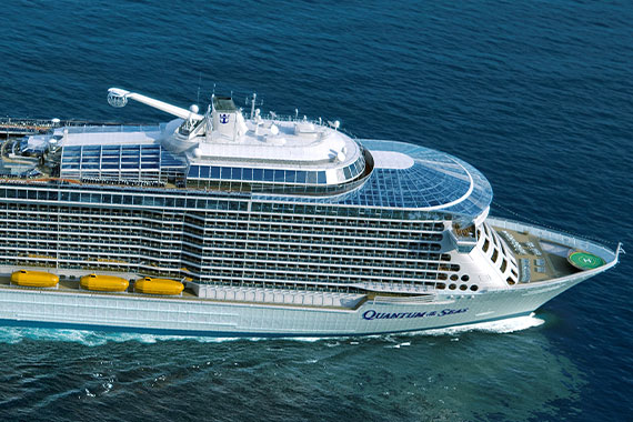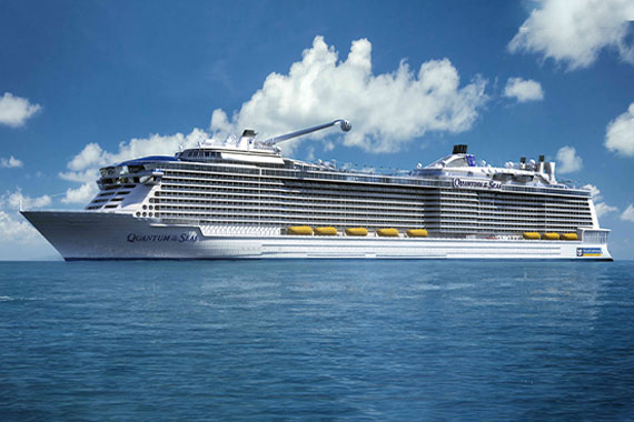 “海洋量子号”是皇家加勒比量子(Quantum)系列的首艘邮轮,是全球邮轮史上的又一次重大飞跃,更多“海上初体验”的娱乐革新被引入其中,例如跳伞体验将让游客在300英尺的高度体验惊险刺激的空中之旅;海上最大的室内运动及娱乐综合性场馆则配备了碰碰车和旱冰场等设施;还有迄今为止最大且最先进的游轮客房,这该系列旗下的Quantum of the Seas每个客房都可观景。 “海洋量子号”邮轮拥有诸多前所未有的突破性设施,北极星以360度摇臂支撑在距海平面近100米的高空,让游客将巨大船体和广阔海景尽收眼底。“海洋量子号”作为量子系列中的第一艘邮轮,重约16.8万吨,可容纳4180名乘客,是世界上最大的十艘邮轮之一。